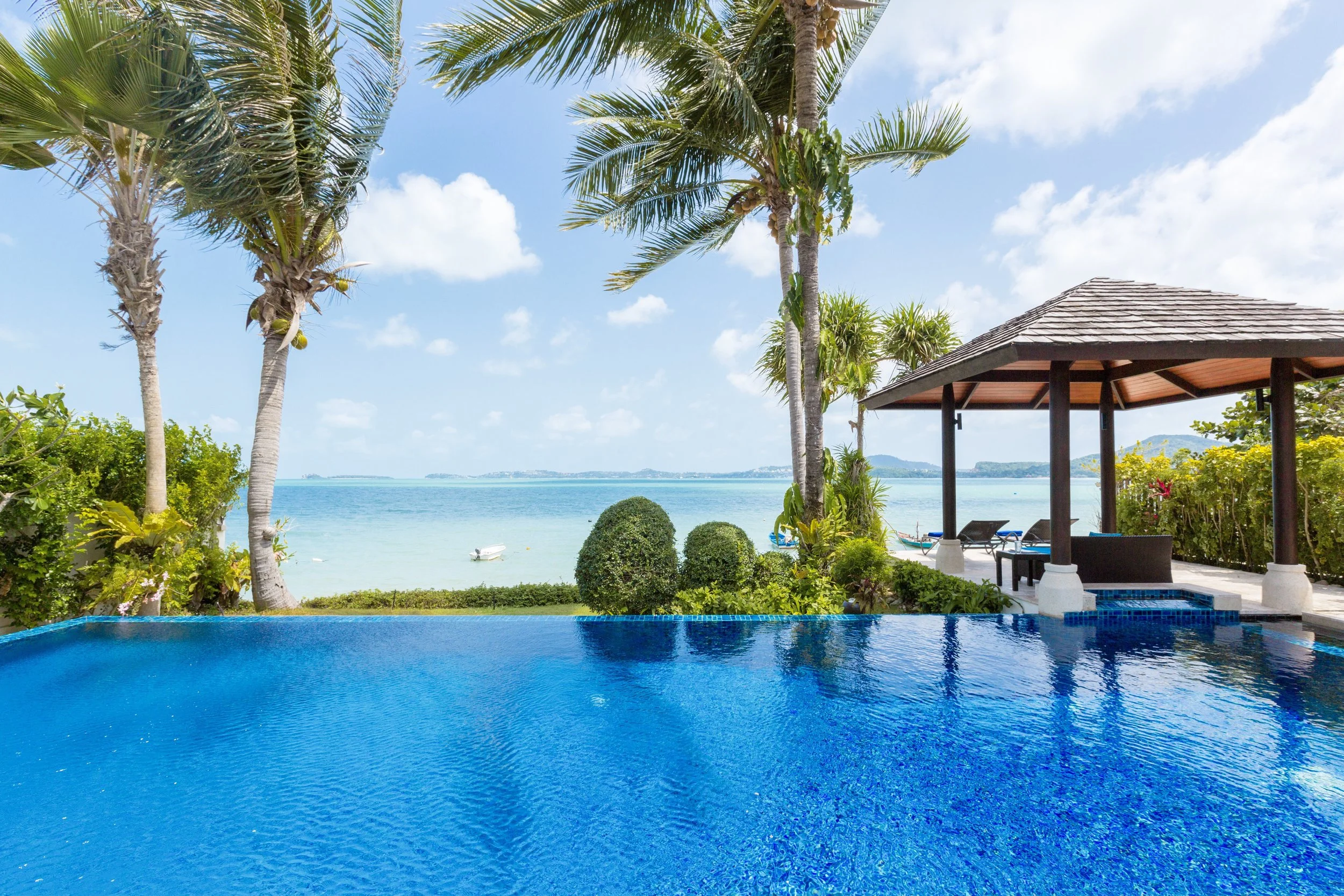 Located in a quieter nook within Bophut, a delightful fishing village, Baan Leelawadee offers a tranquil getaway from Samui’s busy tourist areas. You’re not short on entertainment and dining options, either; the villa is just a short drive to the vibrant Fisherman’s Village.